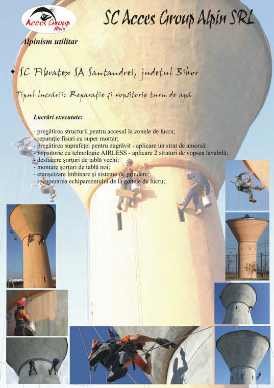 • Fibratex SA Santandrei, jud. Bihor - reparatie, vopsitorie exterioara si montare sorturi tabla turn de apa (detalii)